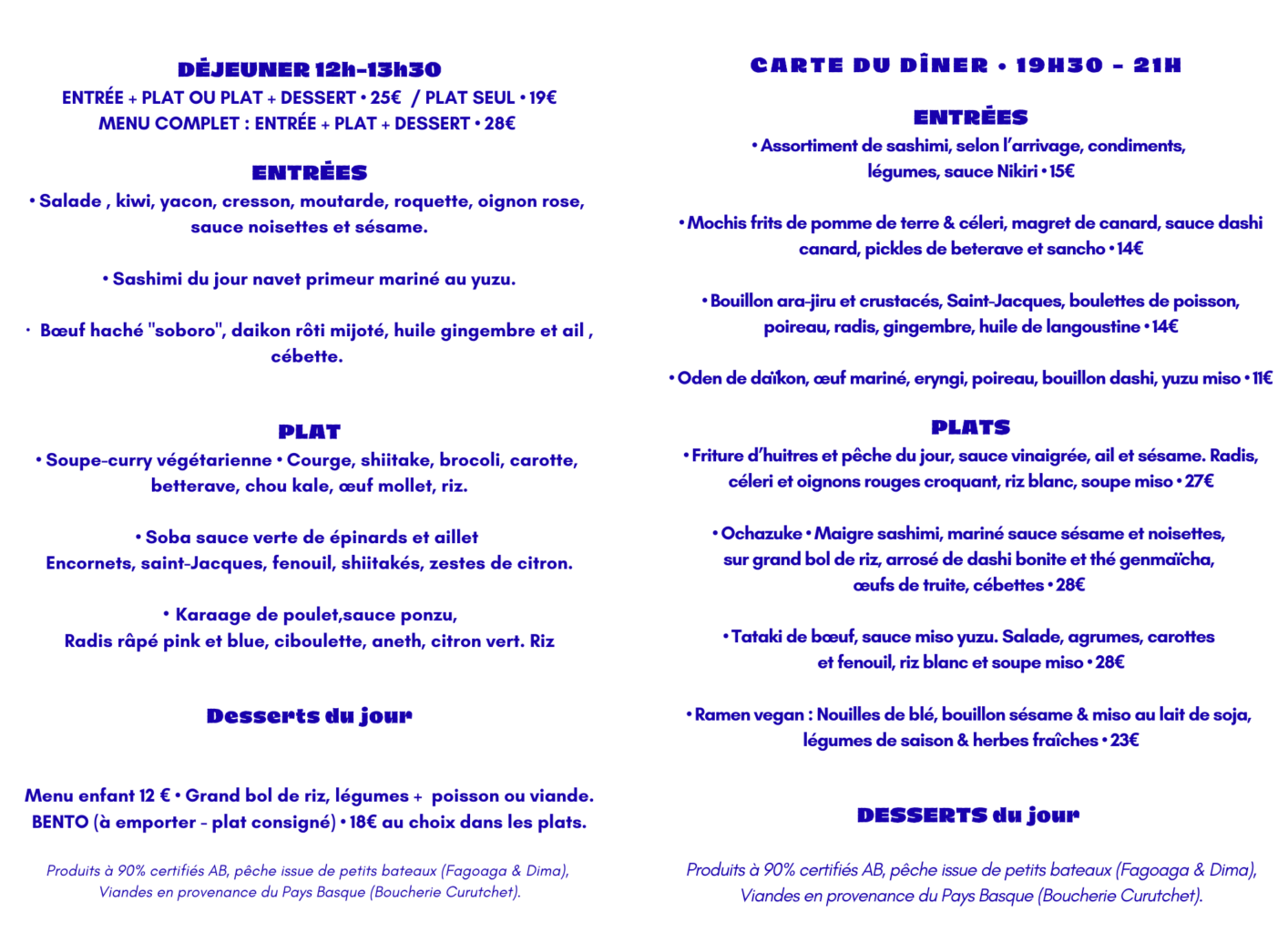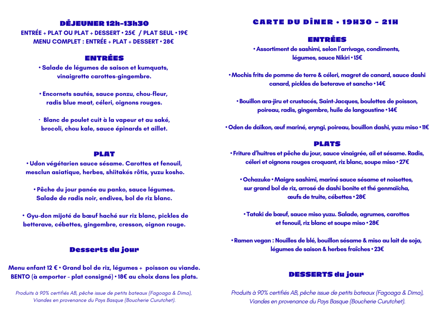 Le midi c’est le bentô de 12h à 13h30 à la carte selon disponibilités !